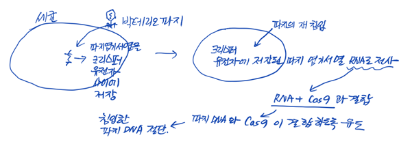 작년 허 젠쿠이 교수 논란과도 연관이 있으면서 합성 생물학에서 가장 주목을 받고 있는 기술이 크리스퍼-카스(CRISPR-Cas9) 유전자 가위 기법이다. 이 기법을 간단히 설명하면 다음과 같다. 크리스퍼-카스 기법에 사용하는 것은 크게 두 부분으로 나뉘어 설명할 수 있다. 먼저 크리스퍼 유전자 부분이 있는데, 이 부분은 잘라낼 유전자 부위를 저장 지정하는 역할을 하는데, 이 부분은 21개 염기쌍으로 구성되어 있다. 21개 염기쌍으로 구성된 DNA 사슬은 생물체 내에서 아주 정확하게, 거의 오류가 없이 특정 유전자 부분을 찾아내는 기능을 한다. 다음으로 카스 9 단백질 부분이 있는데, 이 부분은 찾아낸 특정 유전자를 자르는 가위 역할을 한다. 이 시스템은 세균이 자신에게 침입한 바이러스를 물리치는 과정을 연구하던 중에 발견된 것이다.