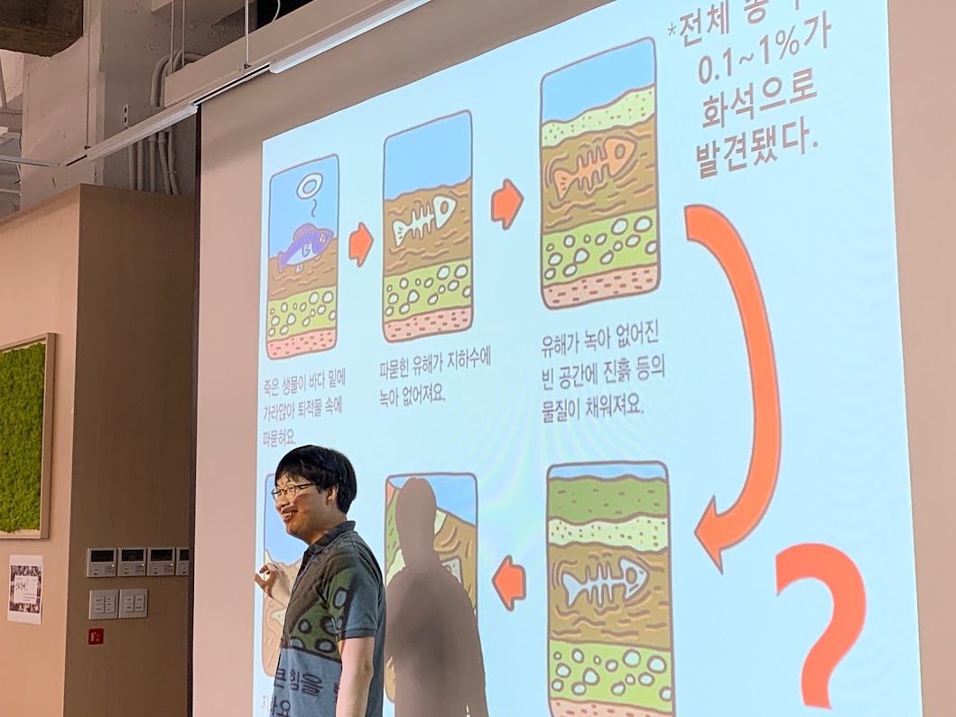 2교시 수업은 "잃어버린 화석을 찾아서"였습니다.