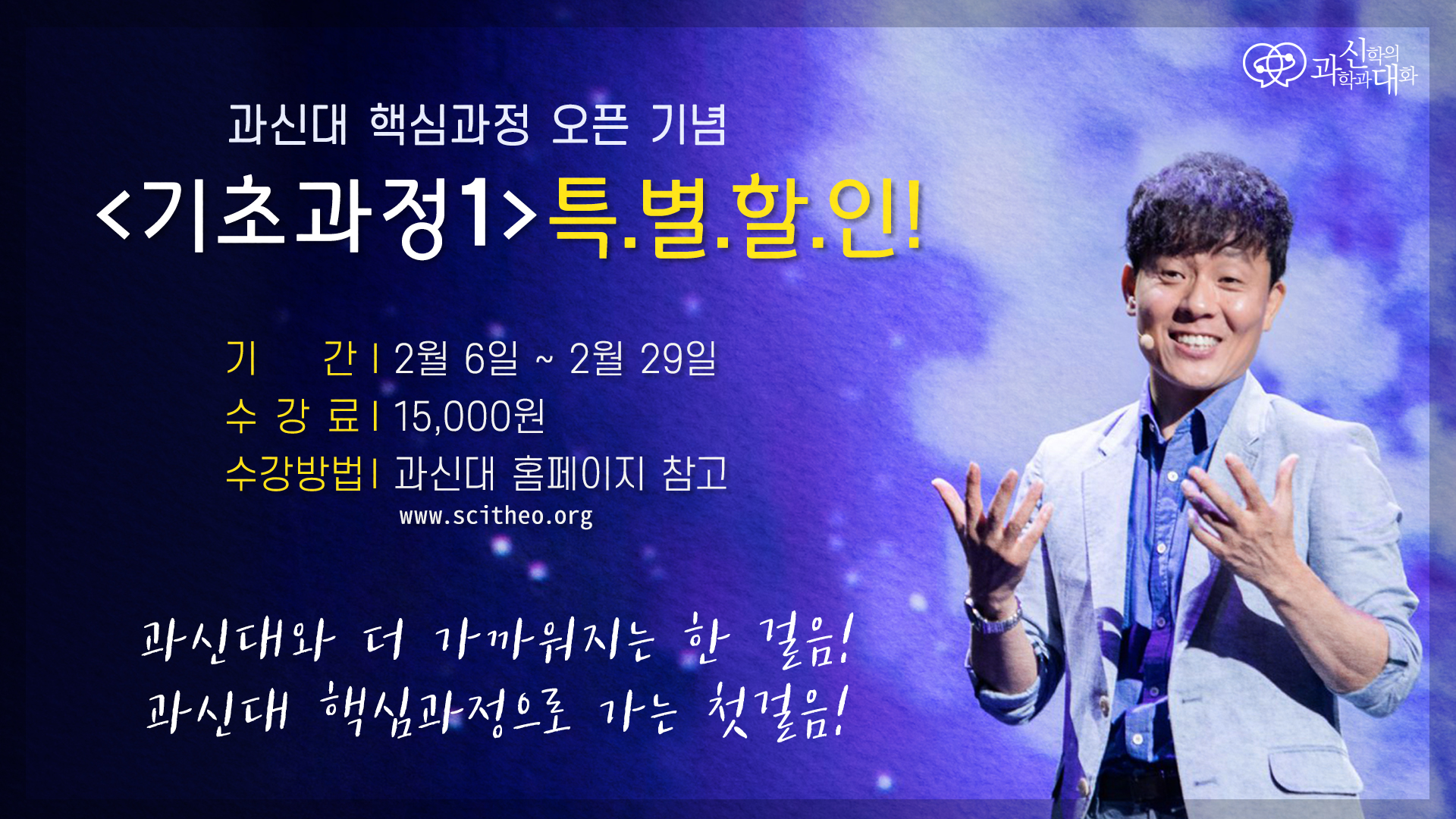 과신대의 핵심 프로그램인 <기초과정>을 2월 한 달간 50% 할인된 가격으로 제공합니다.