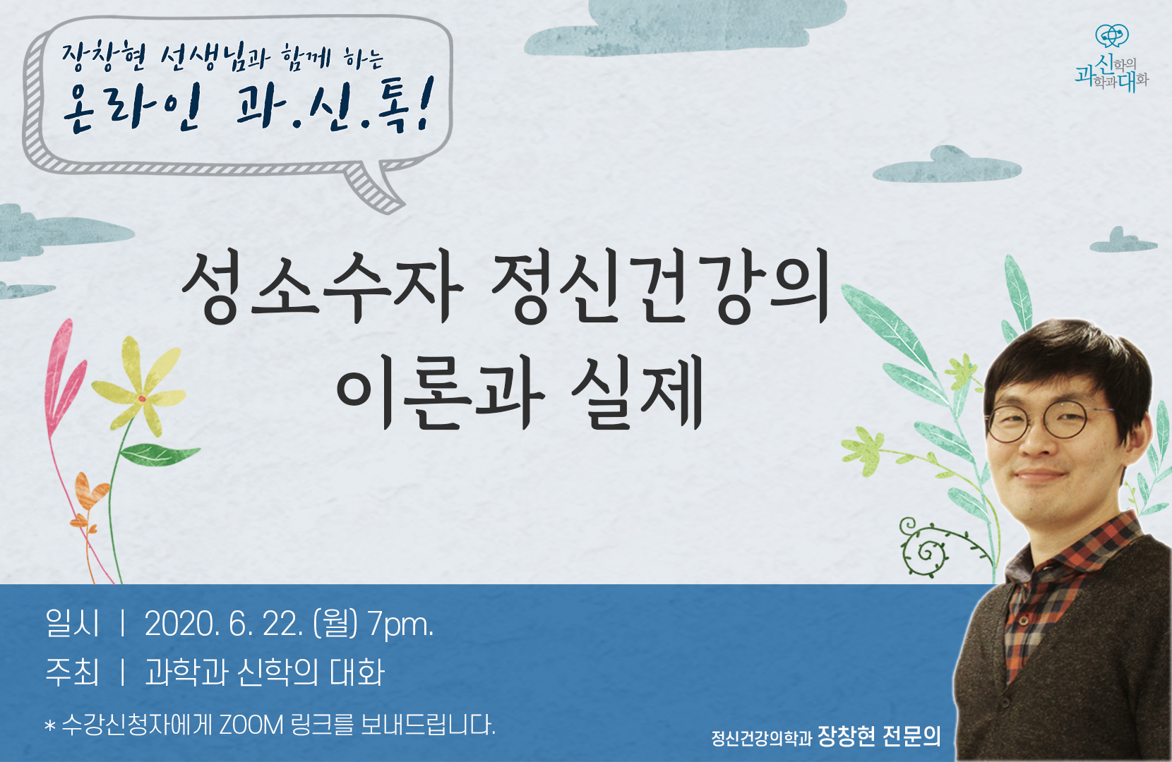 정치적 견해, 종교적 교리로 성소수자를 폄하하기 이전에 오늘날 정신의학에서는 성소수자에 대해서 어떤 의학적 진단을 내리고 있으며, 혐오와 배제라는 틀 안에서 겪는 이들의 정신건강에 대해서 어떻게 이야기하는지를 살펴보려 합니다. 그동안 성소수자의 정신건강에 대한 연구와 강연을 꾸준히 해오신 장창현 선생님을 모시고 함께 이야기해보려 합니다.