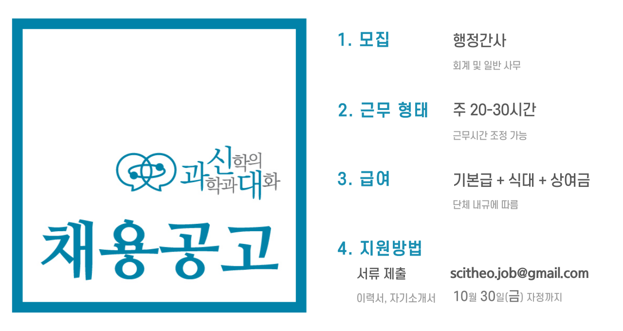 [채용 안내] 과학과 신학의 대화에서 함께 일할 동료를 찾습니다.
