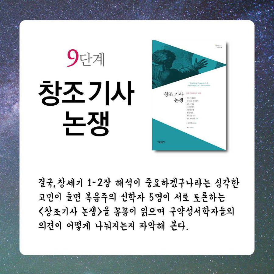 이 글을 읽고 있는 당신은 어떻게 생각하는가? [창조기사논쟁]은 단순히 창세기의 해석에 관한 논쟁이 아니다. 우리는 이 책을 통하여 단순히 정보를 얻는 것이 아니라, 타인에 대한 겸손한 자세를 배우게 된다. 성서를 대하는 자세를 삶에 어떻게 적용할 것인가를 배우게 된다.