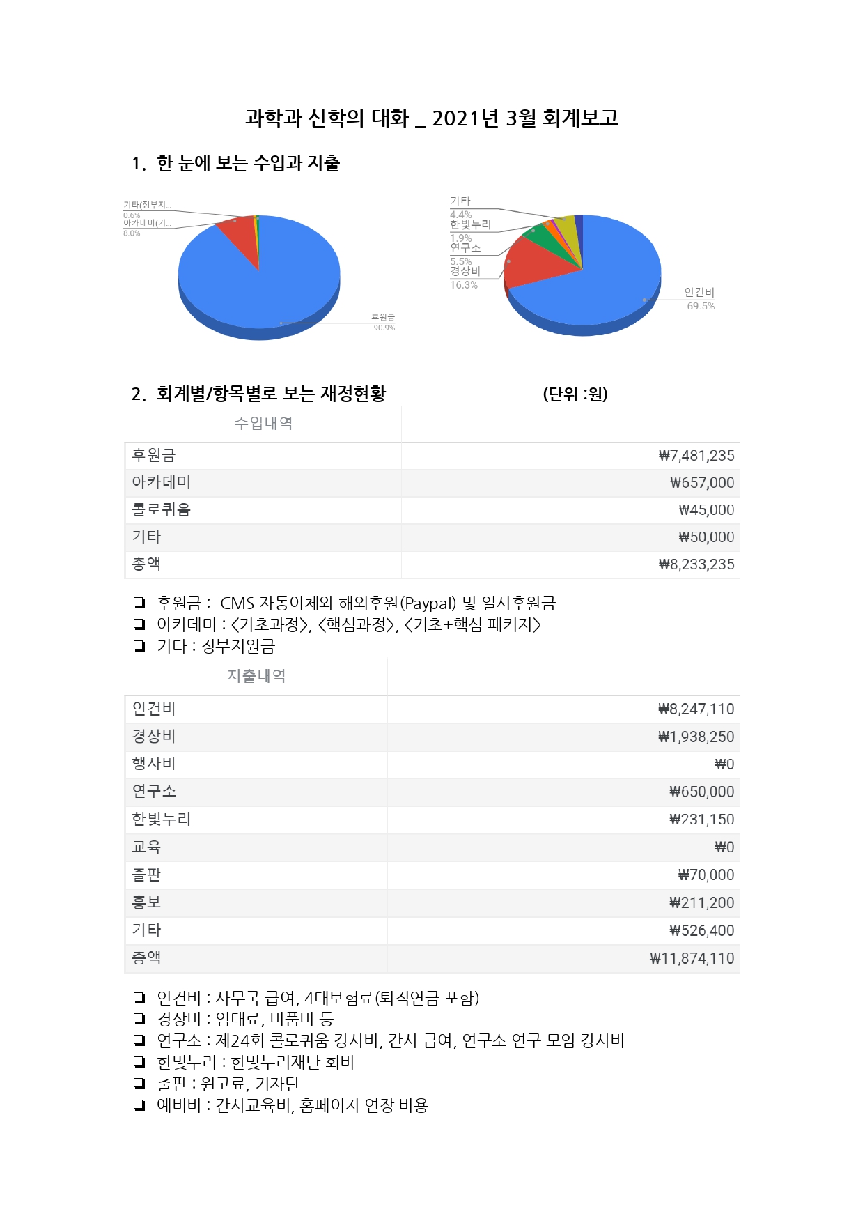 ** 2021년 3월 회계 보고 ***