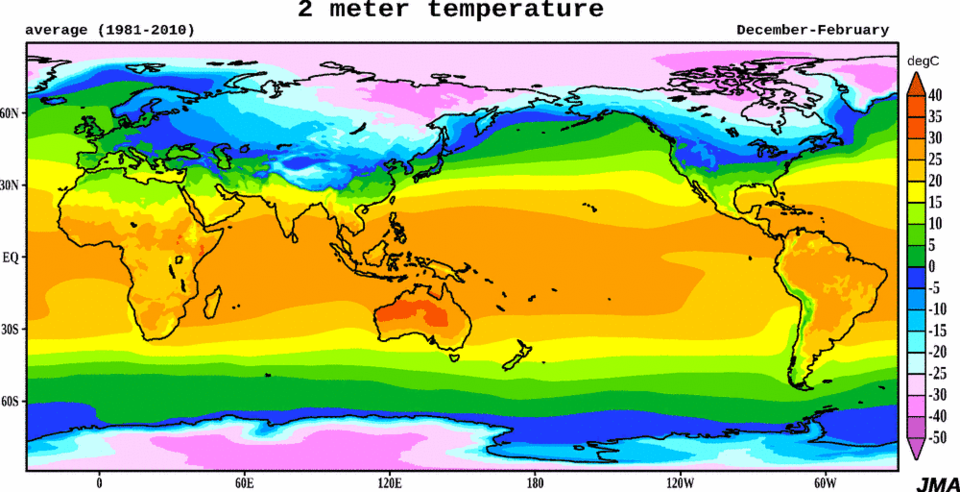 한파와 관련한 기후변화나 지구온난화를 살펴보기에 앞서, 먼저 겨울철 한파의 원리부터 설명하겠습니다. 계절이 바뀌는 이유는 지구가 자전축이 23.5도 기울어진 상태로 태양을 공전하기 때문입니다. 이 경사로 인해 지구가 태양과 이루는 각도가 달라집니다. 태양열은 지표면과 수직일 때 가장 많이 들어옵니다. 하지(6월 21일경)에는 태양이 북반구 북위 23.5도 지역을 직각으로 비춰서 북반구가 더워집니다. 동지(12월 22일경)에는 태양이 남반구 남위 23.5도 지역을 직각으로 비추기 때문에 남반구는 더워지고 북반구는 추워집니다. 하지만 태양의 고도변화뿐 아니라 지형적 요인도 계절의 변화에 많은 영향을 끼칩니다. 대다수 서유럽 지역은 한국보다 고위도에 있습니다. 제가 거주하는 취리히는 북위 47.2도, 작년에 거주했던 에든버러는 56도로 서울의 위도인 37.3도에 비하면 한참 북쪽입니다. 그런데도 겨울에는 취리히나 에든버러가 서울보다 기온이 높고 따뜻합니다. 12~2월 평균기온 그래프(그림1)를 보면 한국은 파란색(겨울철 평균기온 0℃~영하 5℃)으로 표시되어 있지만, 서유럽 지역은 초록색(0℃ 이상)으로 표시된 것을 볼 수 있습니다. 대서양을 끼고 있는 유럽은 멕시코로 올라오는 따뜻한 해류의 영향을 받아 겨울이 상대적으로 따뜻하지만, 유라시아 대륙에 위치한 우리나라는 시베리아고기압이라고 불리는 대륙성고기압의 영향을 받아 겨울이 더 춥습니다. 한 번쯤 일기예보를 통해 “시베리아고기압의 가장자리에 들면서 날씨가 추워지겠습니다”라는 말을 들어보셨을 겁니다. 이런 날은 바람이 북쪽에서 불어옵니다. 북쪽에는 상대적으로 차가운 공기가 자리하고 있어서 북풍이 불면 기온이 뚝 떨어지는 것입니다.