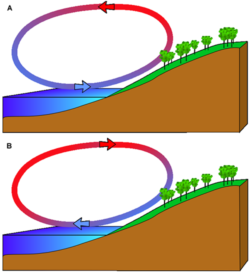 학창 시절, 과학 시간에 그림2를 본 기억이 있을 겁니다. 해륙풍의 원리를 설명하는 모식도입니다. 낮에는 육지와 해양의 비열(어떤 물질 1g의 온도를 1℃만큼 올리는 데 필요한 열량) 차이로 육지가 해양보다 빨리 가열됩니다. 육지의 공기는 상승하고 그 빈자리를 메꾸기 위해 해양에서 육지로 공기가 이동하면서 바람이 붑니다. 이를 해풍이라 합니다. 반면, 밤에는 육지의 온도가 더 빨리 내려가면서 하강기류가 생기고 바다로 부는 육풍이 발생합니다. 낮을 여름으로, 밤을 겨울로 바꿔서 생각하면 계절풍도 쉽게 이해할 수 있습니다. 우리나라는 거대한 유라시아 대륙과 태평양 사이에 놓여있기 때문에 여름에는 태평양에서 바람이 불어와 후덥지근하고, 겨울에는 시베리아에서 바람이 불어와 매우 춥습니다. 연중 온도의 변화가 크고 사계절이 뚜렷한 이유가 여기 있습니다. 계절마다 방향을 바꾸어 일정하게 부는 바람을 기상 용어로 ‘몬순’이라 하고, 겨울철 시베리아에서 기원하는 계절풍을 ‘동아시아 겨울 몬순’이라고 부릅니다.