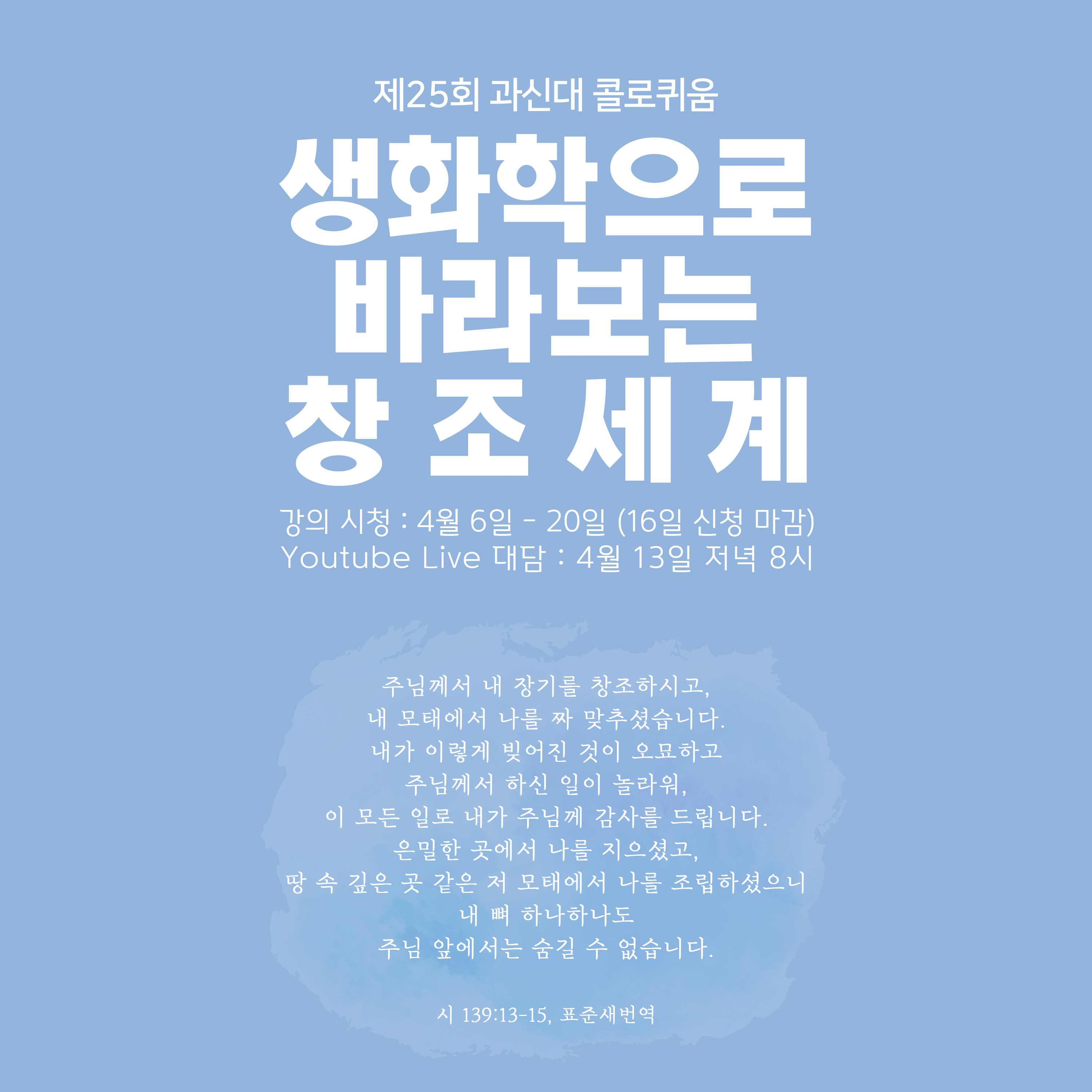 | 제26회 콜로퀴움 "창조-진화 논쟁의 역사와 쟁점" (0) | 2021.05.20 |