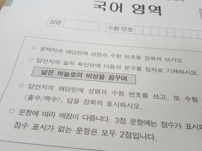 단지 문구를 옮겨적는데도 수험생들의 긴장이 느껴지는 것 같네요^^