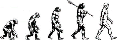 아래 그림은 우리가 인간의 진화에 관하여 책에서 가장 많이 본 그림일 것이다.