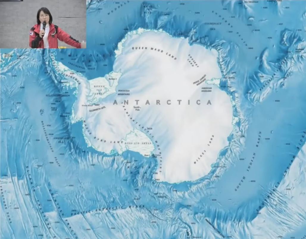 강연의 주제가 북극이지만 남극에 대한 설명도 잠시 해주셨습니다. 남극 대륙은 98%가 얼음으로 되어있는데요, 200m 되는 운동장 10바퀴쯤 되는 두께로 얼음이 덮여 있다고 하는군요. 가장 두꺼운 곳은 24바퀴쯤 된다고 하니 진정한 겨울왕국이 바로 남극이 아닌가 싶습니다. 남극은 여러 나라의 과학자들이 연구 활동만 할 수 있고 군사훈련을 할 수 없다는 조약에 따라야 한다고 합니다.