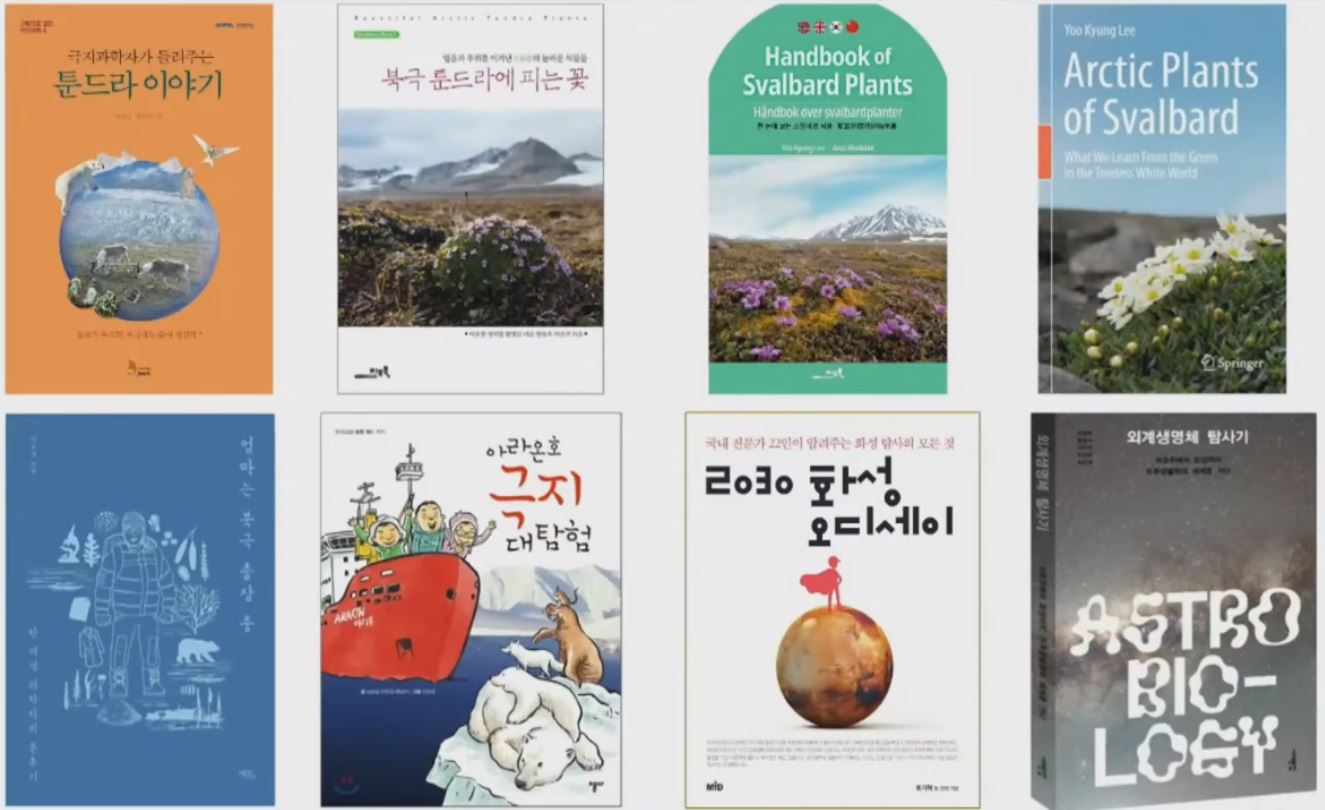 이번 과신대 콜로퀴움은 특별했습니다. 왜냐하면, 그동안 코로나 19로 비대면으로만 진행해오다 다시 대면 강연을 시작했기 때문입니다. 강사로는 ‘북극에서 만나는 기후 위기’라는 주제에 맞게 극지 연구소 책임연구원으로 계시는 이유경 박사님을 모셨습니다. 서울대학교에서 생물학 박사 학위를 받으셨고 북극 이사회 이사이시면서 북극 모니터링 평가 프로그램 한국 대표로 활동하고 계십니다. 이유경 박사님은 연구도 열심히 하시면서 관련 분야를 알리기 위한 저술활동도 활발하게 하고 계시는데요, 아래에 있는 책들이 바로 이유경 박사님이 출간한 저서들입니다.